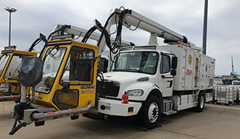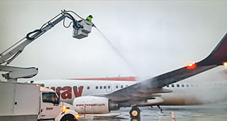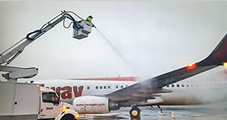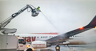 항공기의 동체 및 날개 등에 착빙된 얼음 및 서리 등을 제거 하는 지상 제/방빙 서비스를 제공합니다.